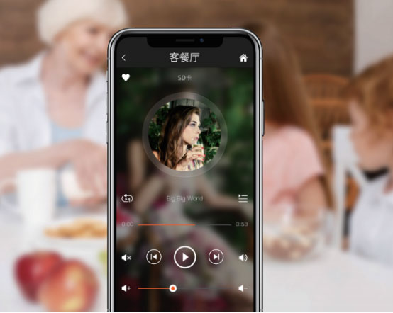 可以通过墙装面板和移动设备来管理音乐。同时,你的音乐也