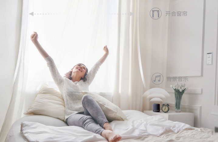 ,在你选择它时,系统可以同时打开窗帘、打开灯光、播放